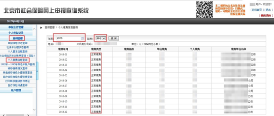 個人權益記錄需要提供北京市社會保險網上申報查詢系統(tǒng) 顯示“正常繳費”截圖,以及加蓋兩紅章的“北京市社會保險個人權益記錄”,如下圖所示。