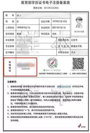 《教育部學(xué)歷證書電子注冊備案表》樣圖(僅學(xué)歷校驗(yàn)有問題考生上傳)
