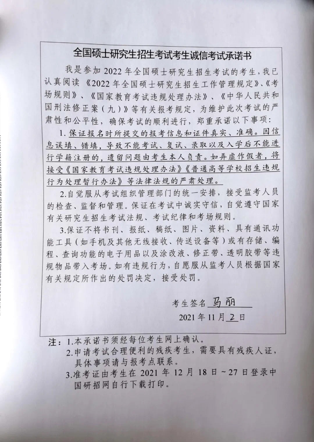 所有考生需提供具有本人手寫簽名的《考生誠信考試承諾書》(文末也可下載)照片,保證內(nèi)容清晰完整。