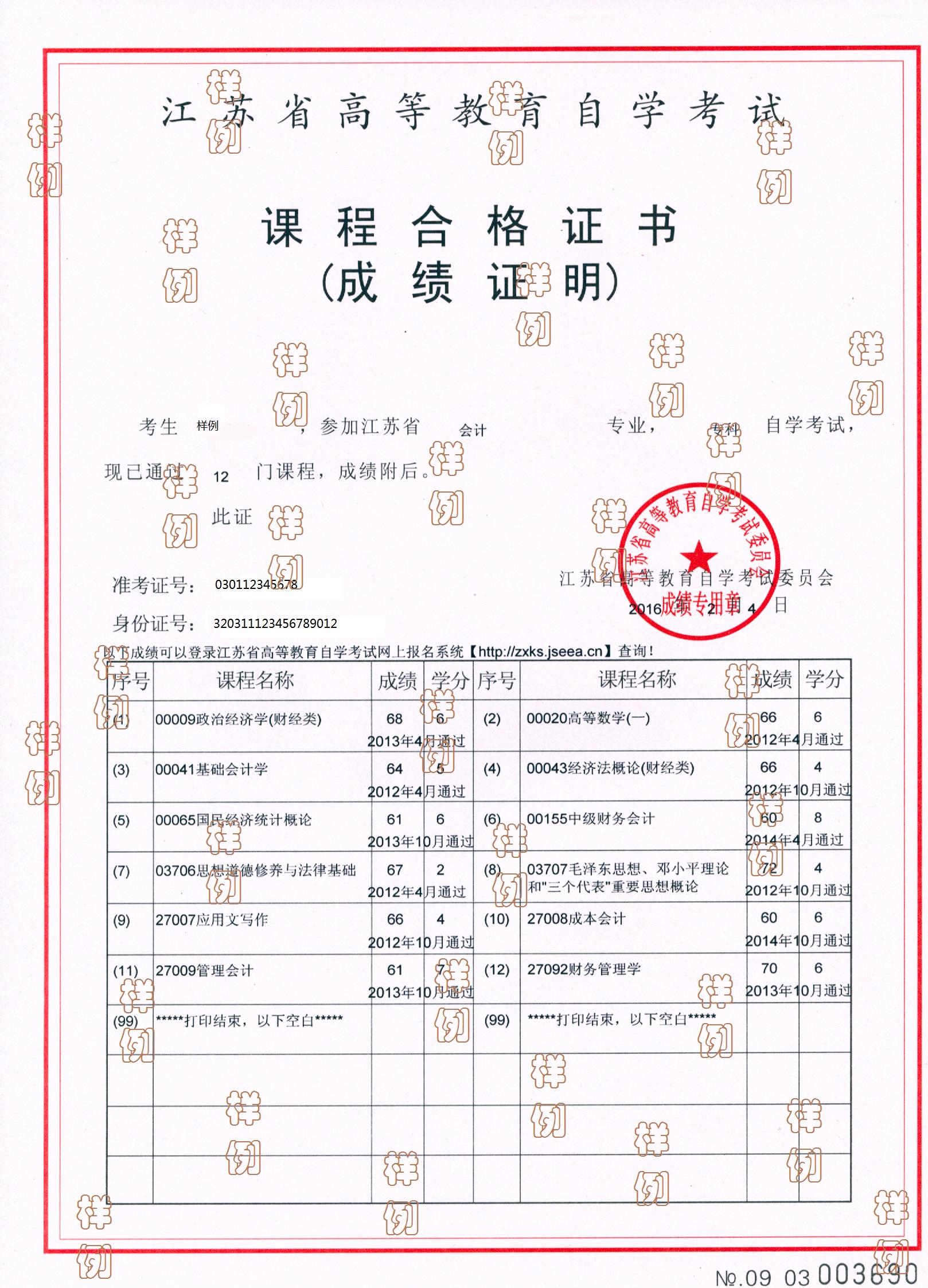 成績證明照片示例