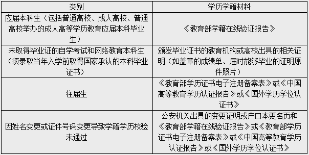 (2)學歷學籍材料(網上報名學歷學籍審核未通過考生)