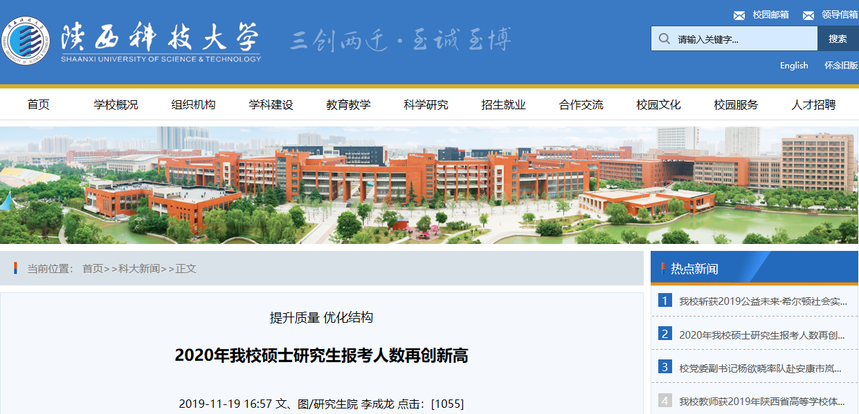 2020考研現場確認已經結束!網上有人預測說2020考研報考人數將超過350萬,目前官方總統計數據還未出來,但已有部分院校和省市公布了2020考研報考人數。今天,小編給大家帶來“2020考研報名人數 | 陜西科技大學2020碩士研究生報考人數比去年增長了22.1%”的相關新聞內容,大家可以了解一下哦!