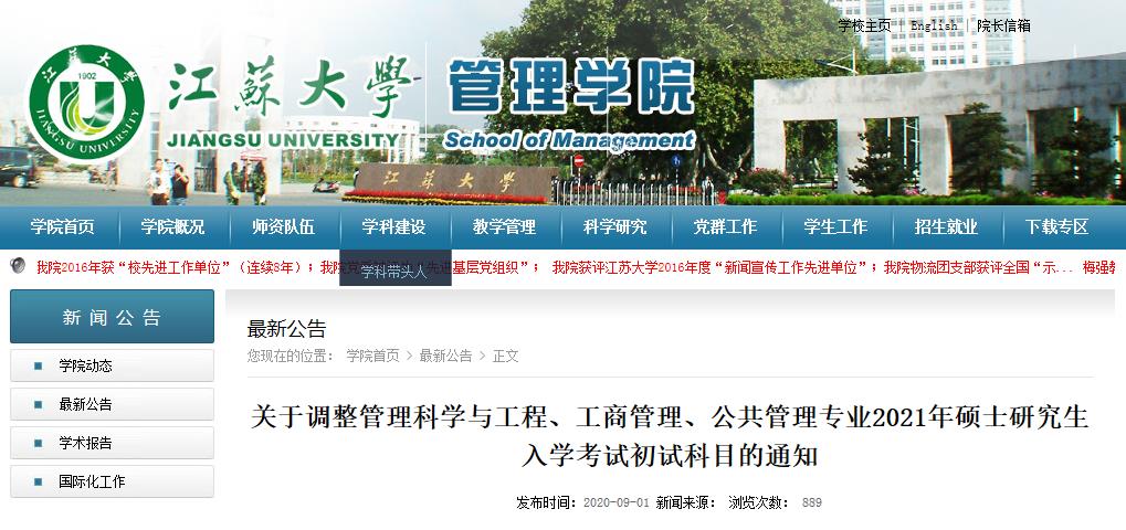 關(guān)于調(diào)整管理科學(xué)與工程、工商管理、公共管理專業(yè)2021年碩士研究生入學(xué)考試初試科目的通知