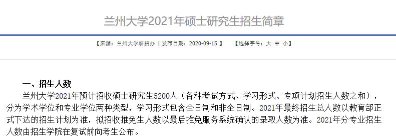 以上就是“考研院校公告:蘭州大學(xué)2021年與2020年考研招生人數(shù)信息變動解析”的全部內(nèi)容,想了解更多考研信息,請多多關(guān)注我們!