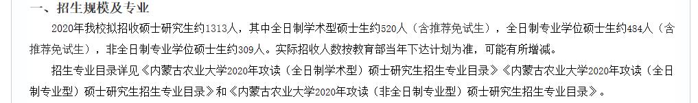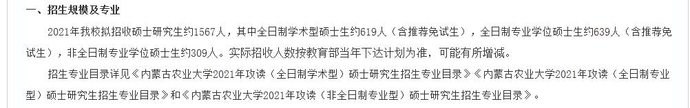 內(nèi)蒙古農(nóng)業(yè)大學(xué)2020年研究生招生計劃約為1331名,2021年全日制招生計劃約為1567名,同比增長236名。