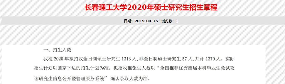 長春理工大學2020年研究生招生計劃約為1313名,2021年全日制招生計劃約為1760名,同比增長447名。