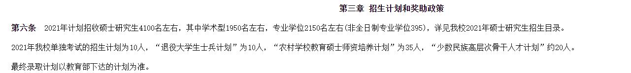 南京師范大學2020年研究生招生計劃約為3600名,2021年全日制招生計劃約為4100名,同比增長500名。