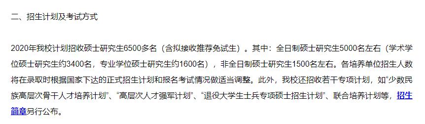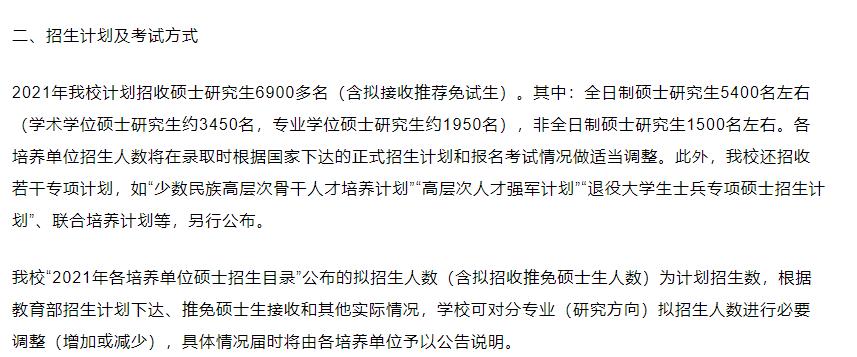 武漢大學2020年研究生招生計劃約為6500名,2021年招生計劃約為6900名,同比增長400名。