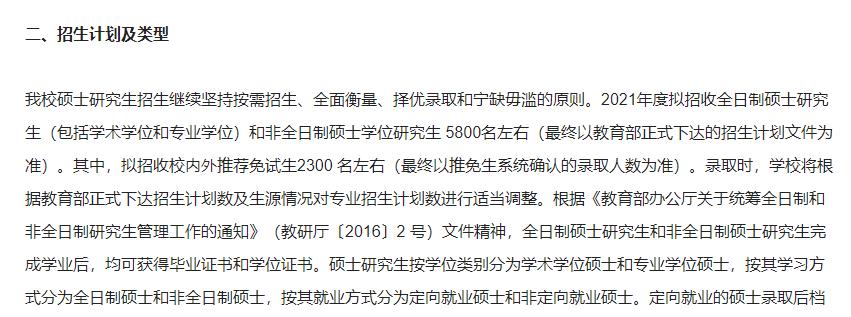 南京大學(xué)2020年研究生招生計(jì)劃約為5550名,2021年招生計(jì)劃約為5800名,同比增長(zhǎng)250名。