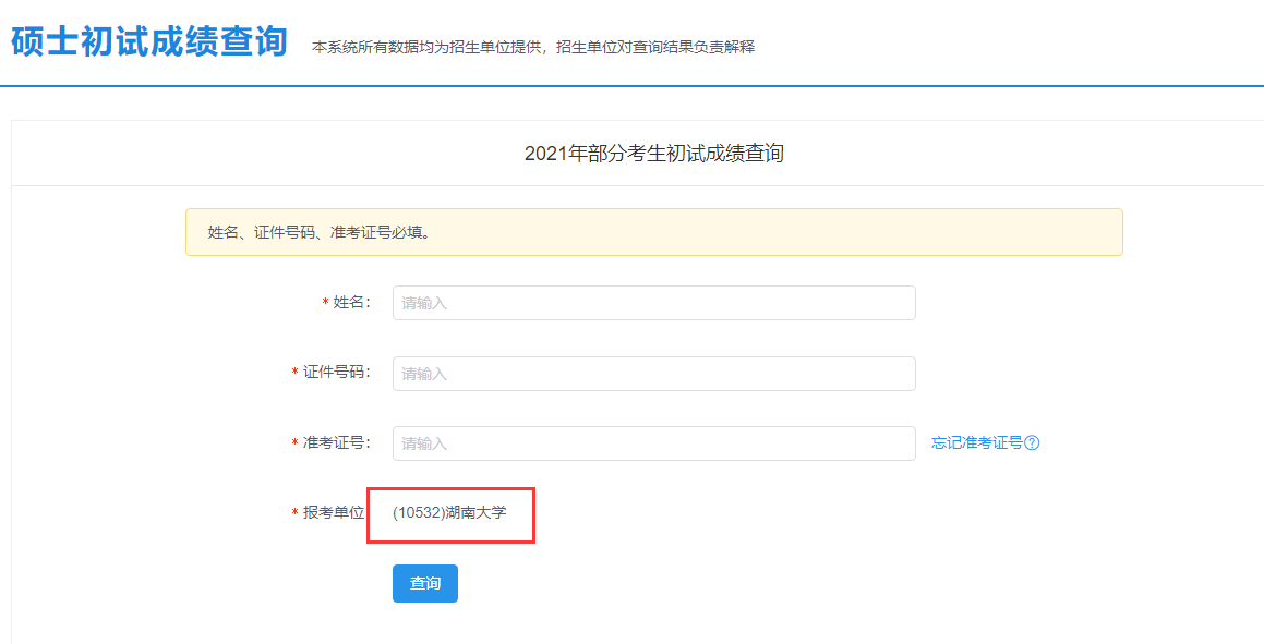以上就是小編整理“2021考研初試成績:湖南大學考研初試成績查詢?nèi)肟陂_啟!初試成績已公布!”的全部內(nèi)容,想了解更多相關(guān)信息請持續(xù)關(guān)注本網(wǎng)站。