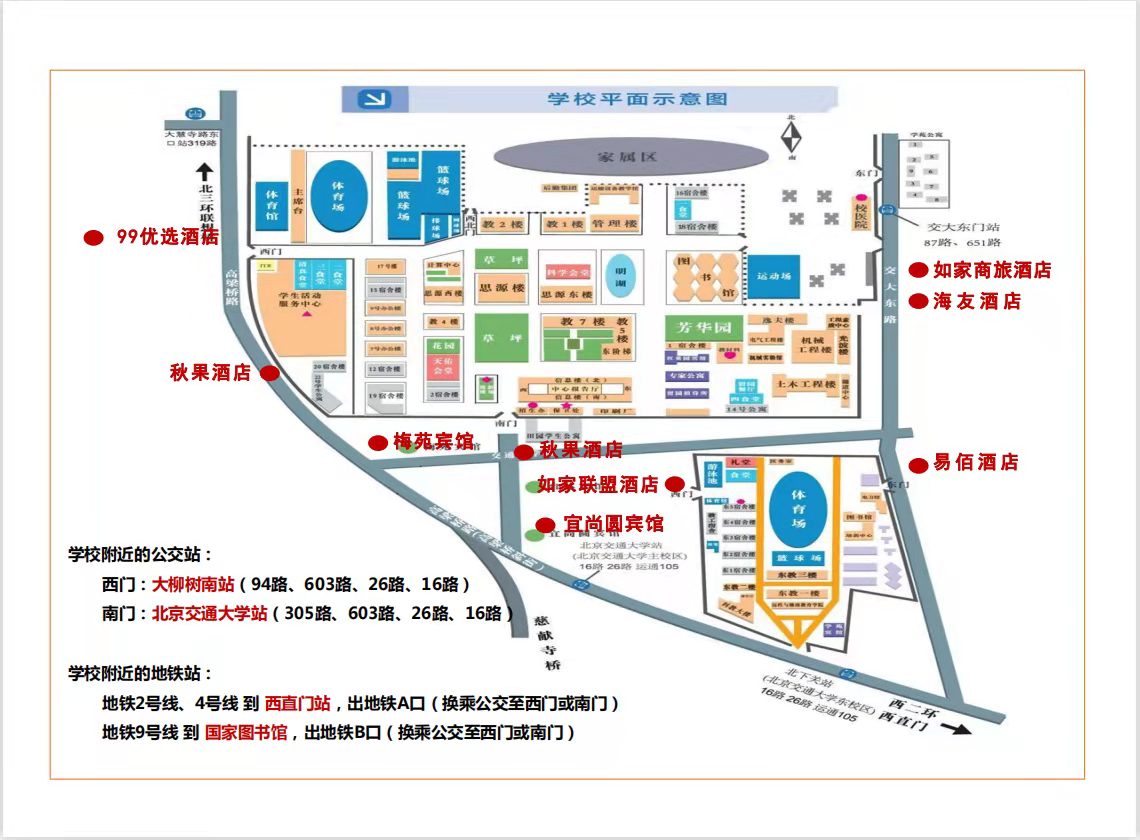 學校不安排考生考前進校看考場,建議考生提前通過電子地圖熟悉校園地形和考場所在位置。學校不提供停車位,社會車輛、考生親友均禁止入校,建議考生綠色出行,學校周邊地鐵、公交如下圖。