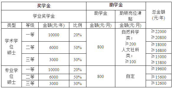 我校為全日制非定向碩士研究生提供獎助學金(標準如下表),全日制定向研究生和非全日制研究生不提供獎助學金。推免生入學第一學年全部享受一等學業獎。