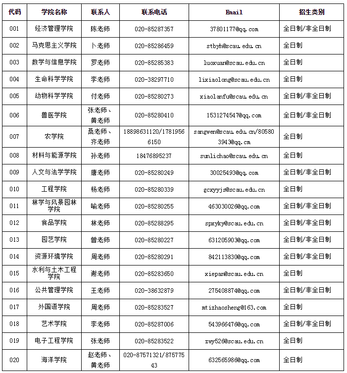地址:廣東省廣州市天河區五山路483號華南農業大學研究生院招生辦公室(行政樓316室)