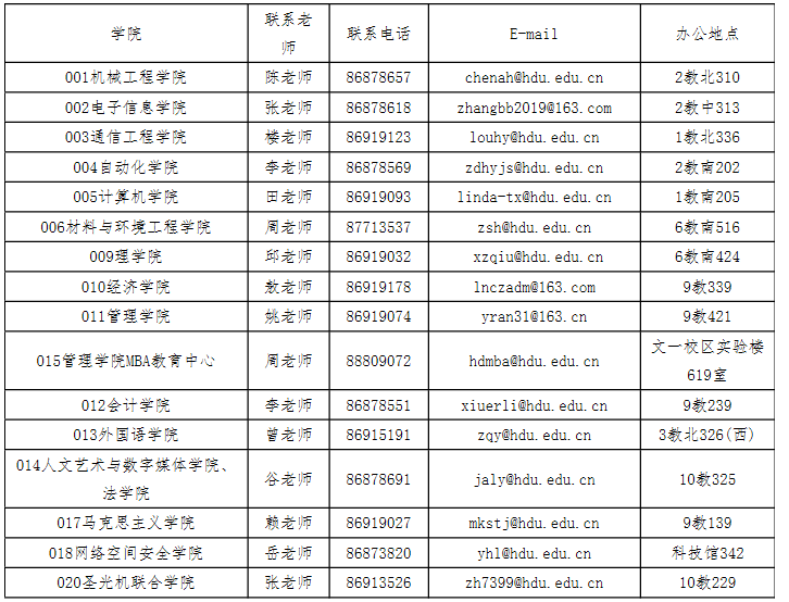 杭州電子科技大學研究生招生辦公室(下沙校區行政樓207)