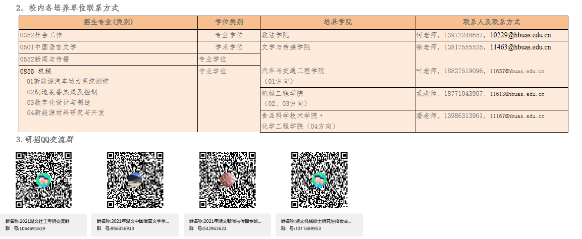 2.校內(nèi)各培養(yǎng)單位聯(lián)系方式