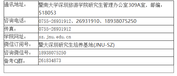 (2)網上報名及現場確認的具體時間、地點、辦法及要求將于報名工作開始前在暨南大學研究生招生網和暨南大學旅游學院網站公布。學院研管辦也會有專人對報名考生提供協助,歡迎考生來電咨詢。