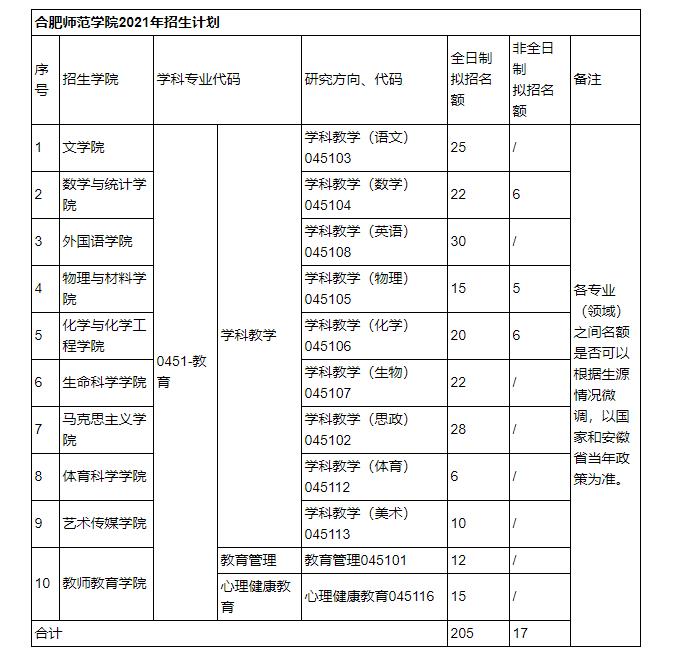 1.全日制招生領(lǐng)域(11個(gè)):學(xué)科教學(xué)(語(yǔ)文、數(shù)學(xué)、英語(yǔ)、物理、化學(xué)、生物、思政、美術(shù)、體育)、教育管理、心理健康教育。擬招生205人。