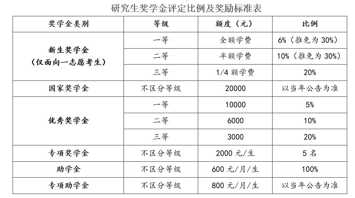 我院為碩士研究生提供豐富的獎(jiǎng)助學(xué)金,獎(jiǎng)助體系基本情況如下表所示: