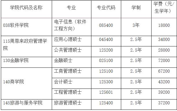 2021年非全日制專業(yè)學(xué)位碩士研究生招生專業(yè)包括:電子信息(軟件工程方向)、應(yīng)用心理、公共管理、金融、工商管理、會(huì)計(jì)、工程管理、旅游管理。