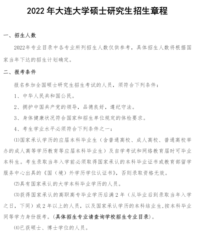 2022考研招生簡(jiǎn)章:大連大學(xué)2022年碩士研究生招生章程