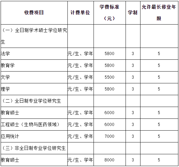 根據(jù)《教育部國家發(fā)展改革委財(cái)政部關(guān)于深化研究生教育改革的意見》(教研〔2013〕1號(hào))、《財(cái)政部國家發(fā)展改革委教育部關(guān)于完善研究生教育投入機(jī)制的意見》(財(cái)教〔2013〕19號(hào)),以及國家教育部和相關(guān)專業(yè)碩士研究生教學(xué)指導(dǎo)委員會(huì)文件精神,經(jīng)上級(jí)財(cái)政核定,我校2022年各類型碩士研究生學(xué)費(fèi)標(biāo)準(zhǔn)及學(xué)制如下: