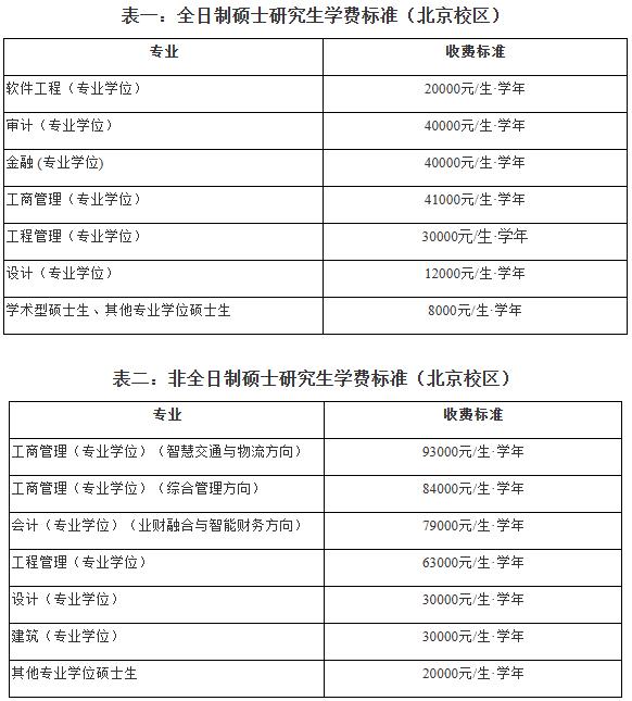 我校按照國家和北京市的規定收取學費,學費標準見表一、表二、表三,同時向符合政策的學生發放國家助學金。符合條件的研究生可申請評選國家獎學金、學業獎學金(標準見表四)以及其他專項獎學金。另外我校設置“助教”、“助管”和“助研”崗位(統稱為“三助”崗位),經雙向選擇承擔“三助”崗位的研究生,可以獲得相應的崗位津貼。