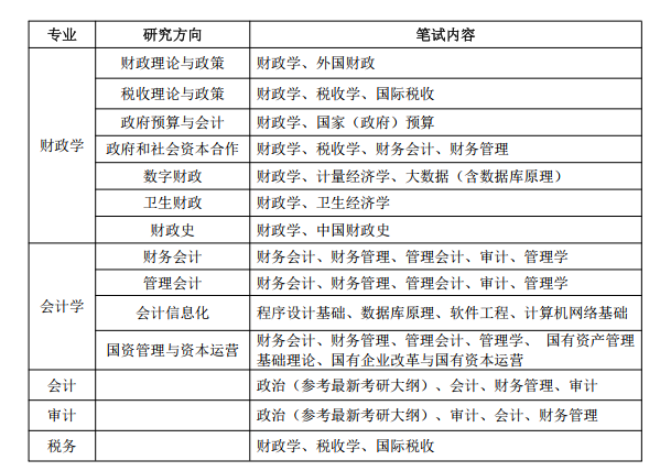 2.方式:筆試考試科目除全國統考外,其他科目由財科院命題,每科考試時間為3小時,詳細考試科目及相關要求等請見《初試目錄》《準考證》。