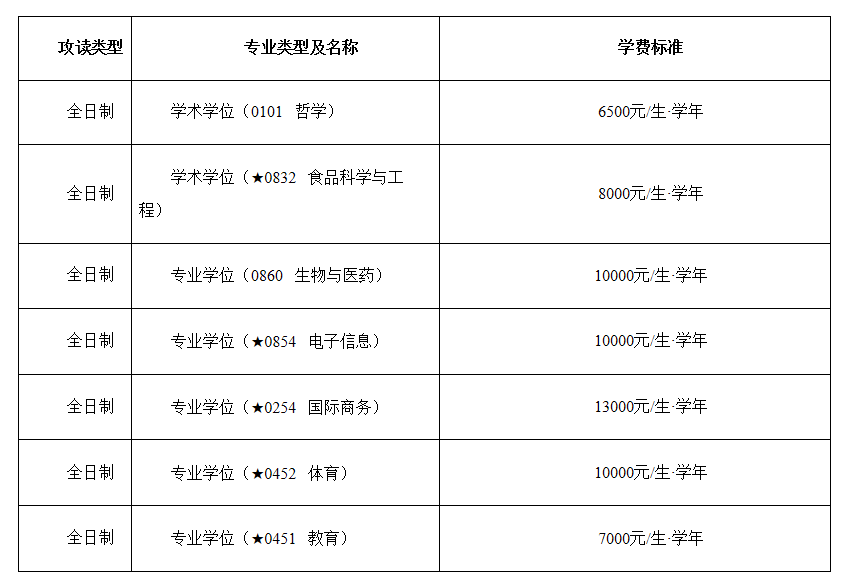 (二)學(xué)費(fèi):根據(jù)國(guó)家有關(guān)規(guī)定,我校2024年碩士研究生學(xué)費(fèi)標(biāo)準(zhǔn)如下: