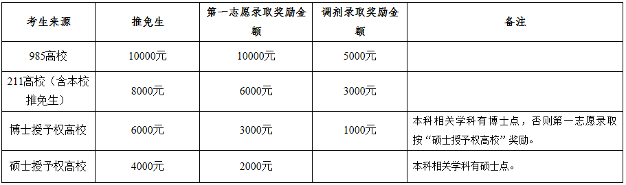 (1)生源獎(jiǎng)學(xué)金:從2014年起,對(duì)達(dá)到國家復(fù)試分?jǐn)?shù)要求并被我校錄取的非定向碩士研究生給予一次性入學(xué)獎(jiǎng)勵(lì)。獎(jiǎng)勵(lì)標(biāo)準(zhǔn)如下: