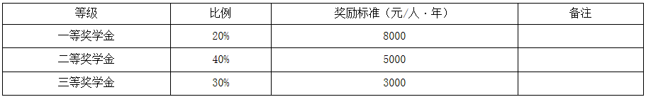 (3)學(xué)業(yè)獎(jiǎng)學(xué)金獎(jiǎng)勵(lì)標(biāo)準(zhǔn):