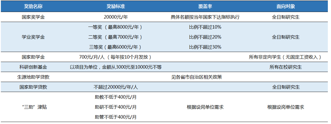 (獎助學金如有變化,以國家和我校最新政策為準)