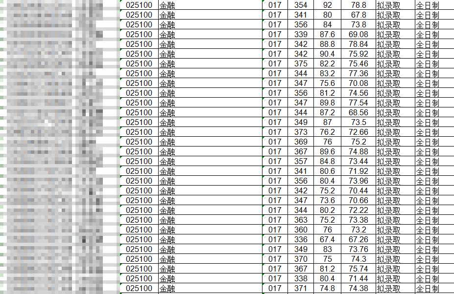 2020年金融碩士全日制擬錄取情況如下: