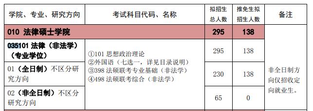 法律(非法學(xué))法律碩士學(xué)院錄取140人,其中包括5退役士兵,5少骨,最高分411,最低分370,平均分391