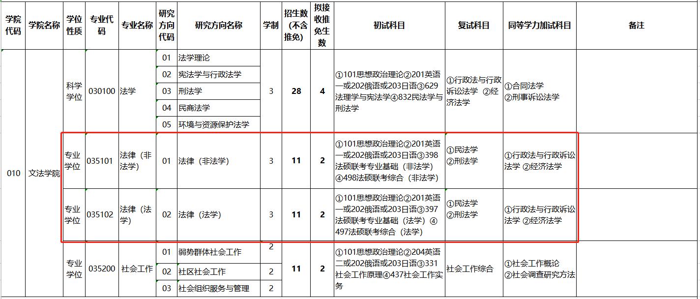 法碩(非法學):錄取 22 人,其中包括2少民計劃,1士兵計劃。最高分390分,最低分352分,平均分371分