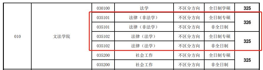 法碩(非法學):錄取20人,最高分371分,最低分326分,平均分349分