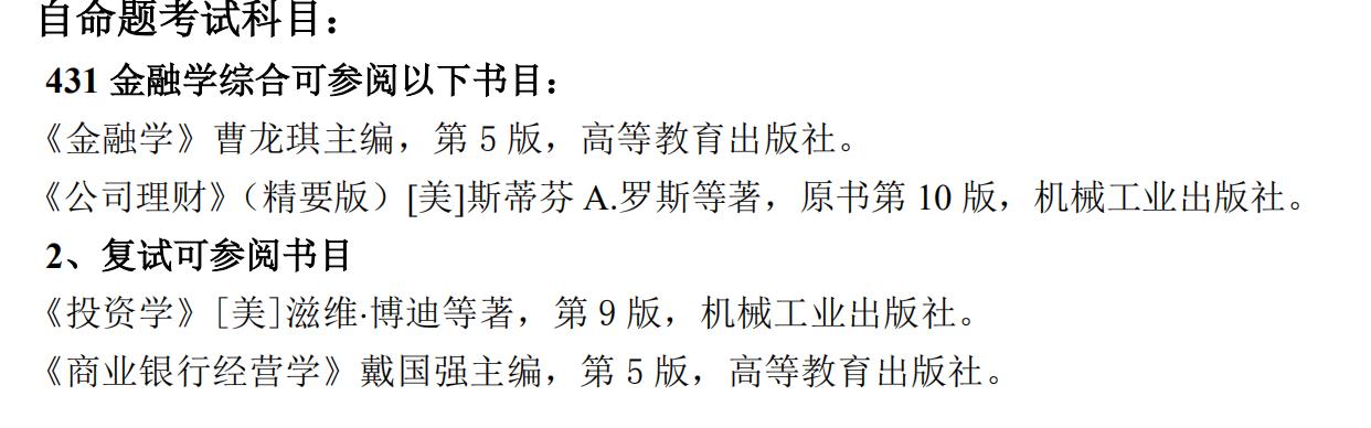 復(fù)試科目:投資學(xué)+商業(yè)銀行經(jīng)營(yíng)學(xué)