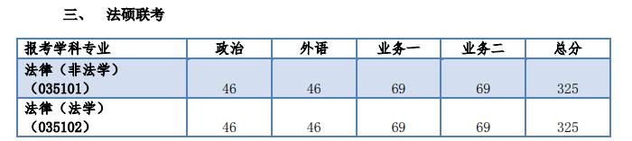 法碩(非法學)復試分數線:46/69/325