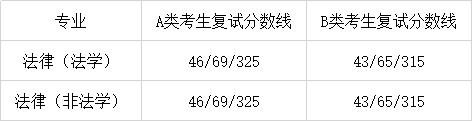 法碩(法學):A類:46/69/325;B類:43/65/315。