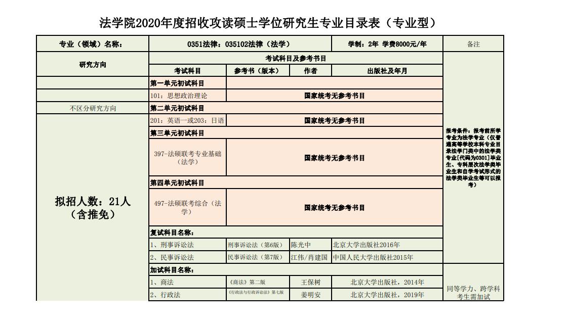 2020年延邊大學法律碩士(法學)學制2年,學費8000元/年。