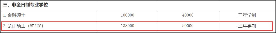 2021年會計專碩學制學費和2020年學制學費一致: