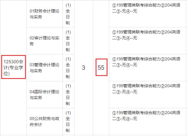 2021年會計專碩全日制擬招生人數為55人