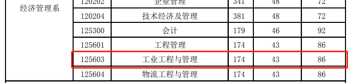 經濟管理系2021年復試分數線為174/86/43