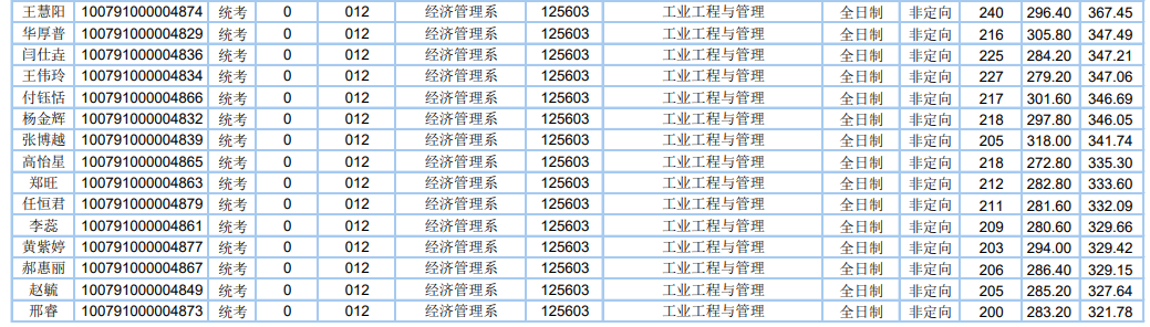 非全日制錄取最高分:213分,