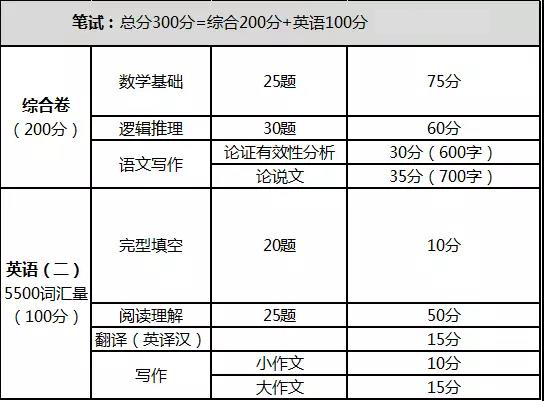 筆試即初試,考試科目只有兩科:管理類綜合和英語(二)。