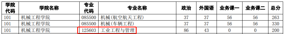 機械工程學院2021年復試分數線為200/86/43