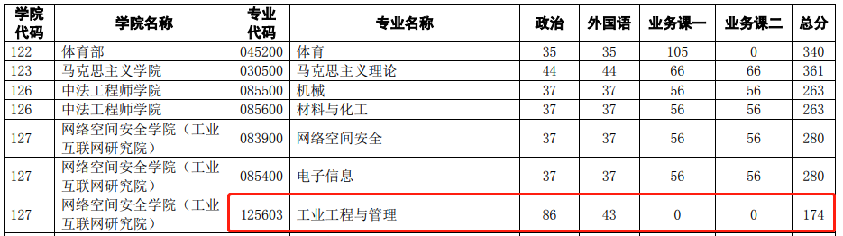 非全日制錄取最低分:175分,
