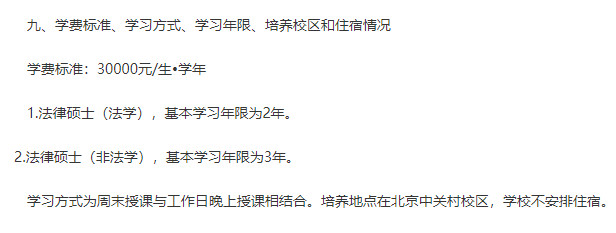 法碩(非法學)非全日制:學制為3年,學費30000元/生/年