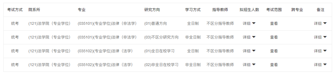 法碩(法學)全日制:學制為2年,學費20000元/生/年
