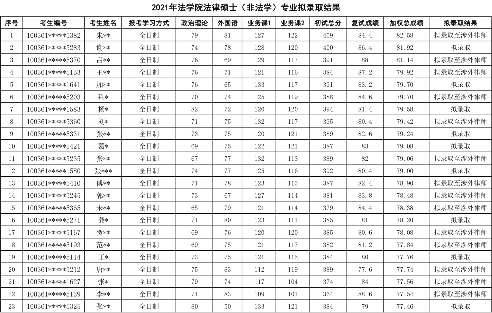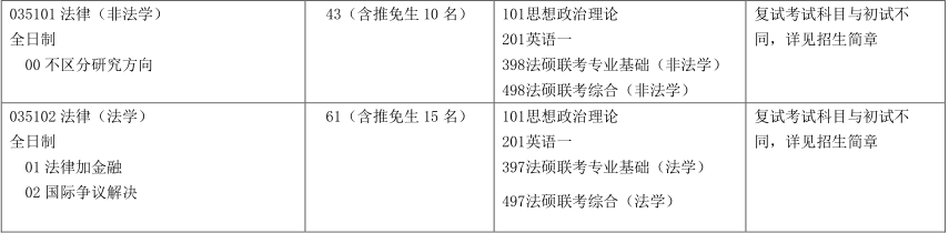2021年法律(非法學)全日制招生人數是43人,含推免10人,