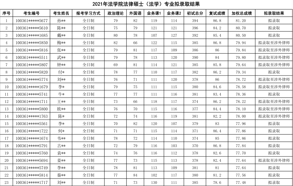2021年法律(法學)全日制招生人數是61人,含推免15人。